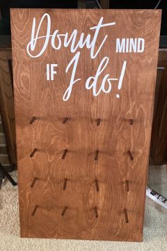 Small projects for weddings including decorative signs with different sizes, donut boards and sticks as well as and backdrops